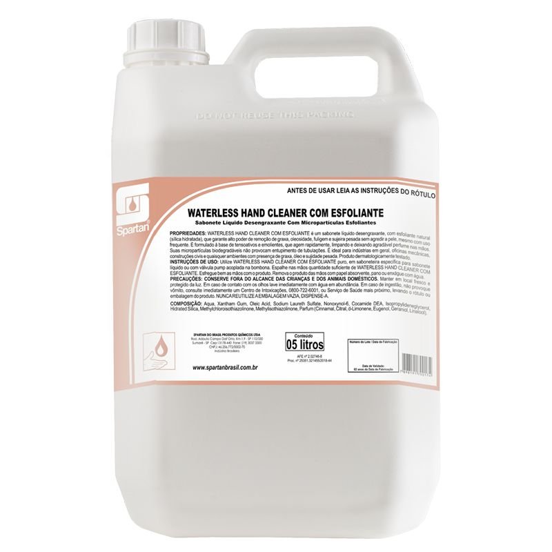 WATERLESS HAND CLEANER COM ESFOLIANTE é um sabonete líquido desengraxante, com esfoliante natural (sílica hidratada), que garante alto poder de remoção de graxa, oleosidade, fuligem e sujeira pesada sem agredir a pele, mesmo com uso frequente.