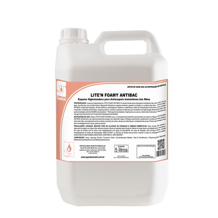 Lite'n Foamy Antibac 5 Litros Espuma Antisséptica Álcool e Biguanida - Spartan Oferta