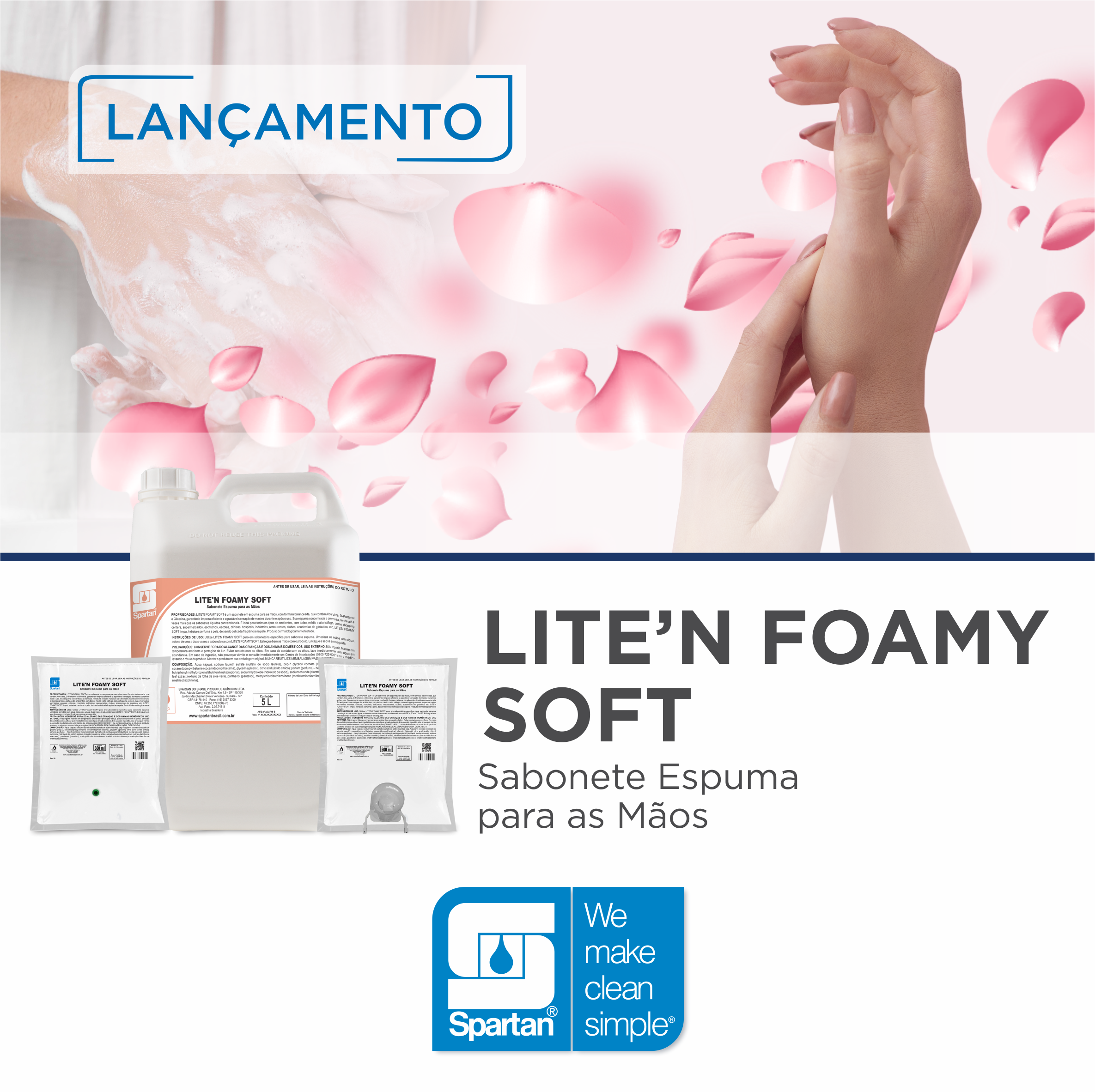 O Lite’n Foamy Soft, da Spartan do Brasil, é um sabonete em espuma para as mãos, formulado para proporcionar limpeza eficiente, hidratação e suavidade durante e após o uso.