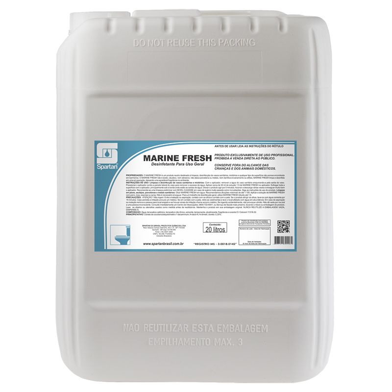 Marine Fresh 20 Litros Limpador Desinfetante Concentrado De Uso Geral - Spartan
