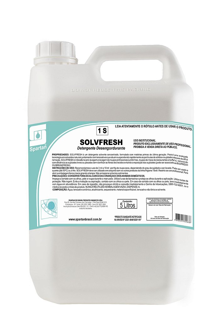 Solvfresh Detergente 5 Litros Desengordurante E Desengraxante Spartan Oferta