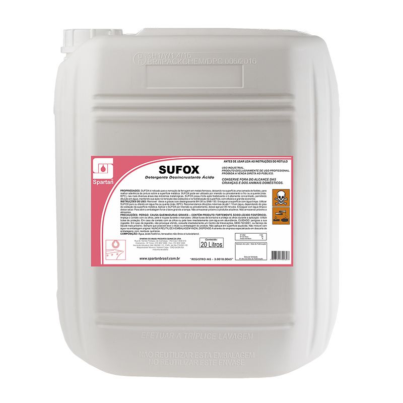SUFOX possui forte ação fosfatizante e é altamente concentrado, permitindo diluição em água, mantendo sua ação na remoção das oxidações e na fosfatização da superfície, com eficácia e grande economia.